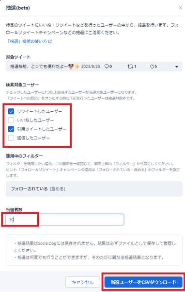 操作方法は、フォロー&リポスト(リツイート)キャンペーンを実施するをご確認ください。