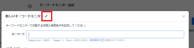 - 新しいキーワードモニターの横にある「✎」をクリックし、タイトルを入力します